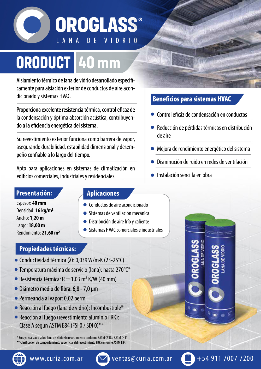 Lana de vidrio Oroglass línea Oroduct para A/A
